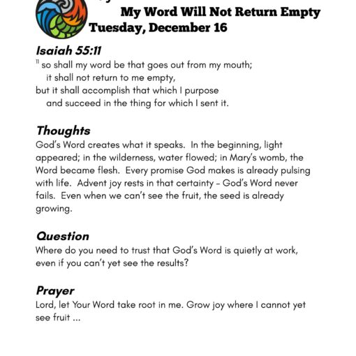 Day 17 – My Word Will Not Return Empty Home Day 19 – Mountains and Hills Will Burst Into Song