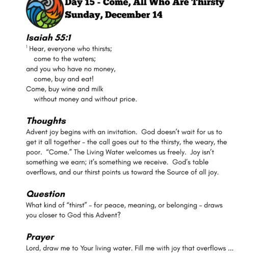 Day 13 – They Stood on Their Feet Home Day 15 – Come, All Who Are Thirsty