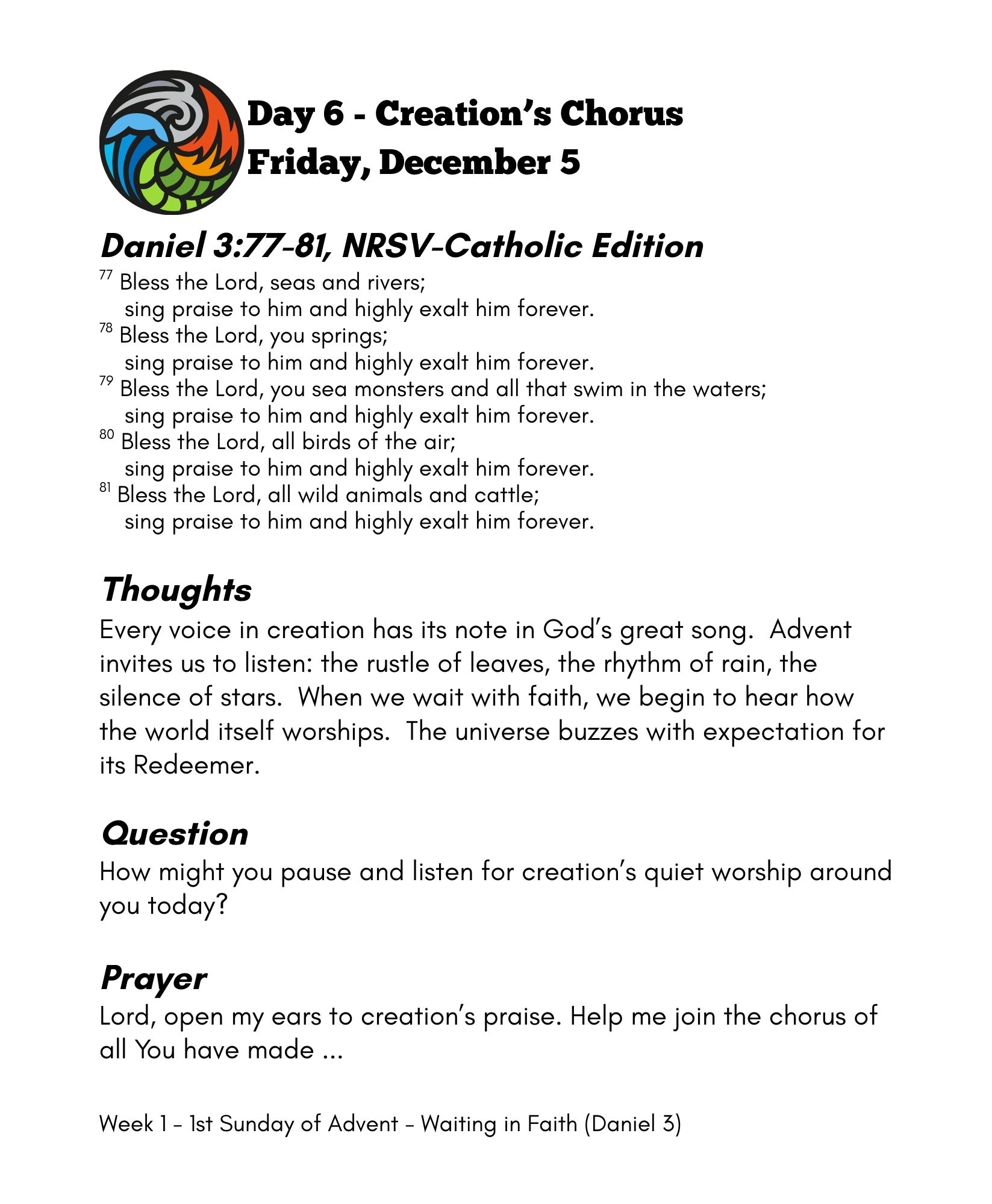 Day 4 – The Fourth Figure Home Day 6 – Creation’s Chorus