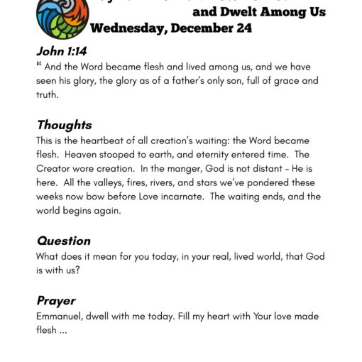 Day 24 – The Light Shines in the Darkness Home Day 25 is the last day of All Creation Waits