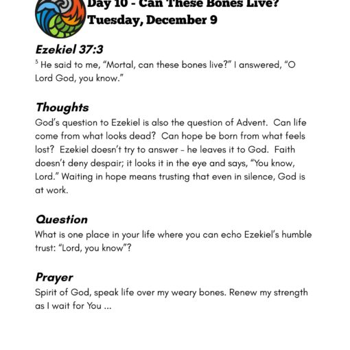 Day 8 – The Hand of the Lord Was Upon Me Home Day 10 – Can These Bones Live?