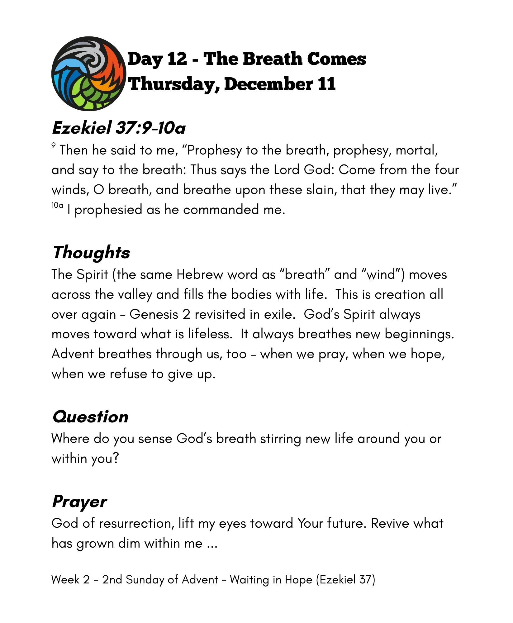 Published December 8, 2025 All Creation Waits, Day 9 – He Set Me Down in the Middle of a Valley Day 8 – The Hand of the Lord Was Upon Me Home Day 10 – Can These Bones Live?