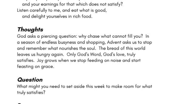 Day 15 – Come, All Who Are Thirsty Home Day 17 – My Word Will Not Return Empty All Creation Waits All Creation Waits, Day 16 – Why Spend on What …