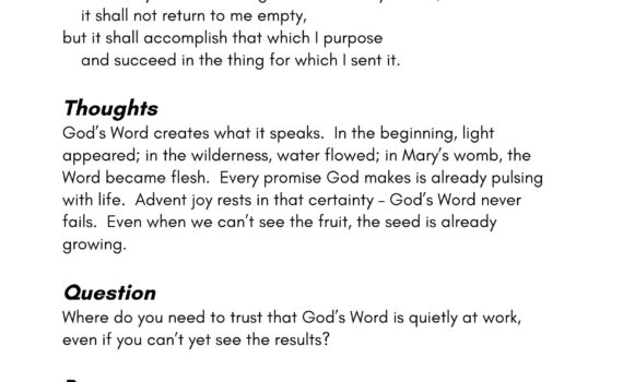Day 16 – Why Spend on What Does Not Satisfy? Home Day 18 – You Will Go Out in Joy All Creation Waits All Creation Waits, Day 17 – My Word Will Not …