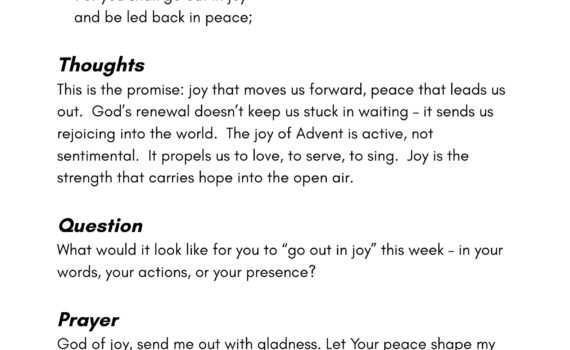 Day 17 – My Word Will Not Return Empty Home Day 19 – Mountains and Hills Will Burst Into Song All Creation Waits All Creation Waits, Day 18 – You Will Go Out …